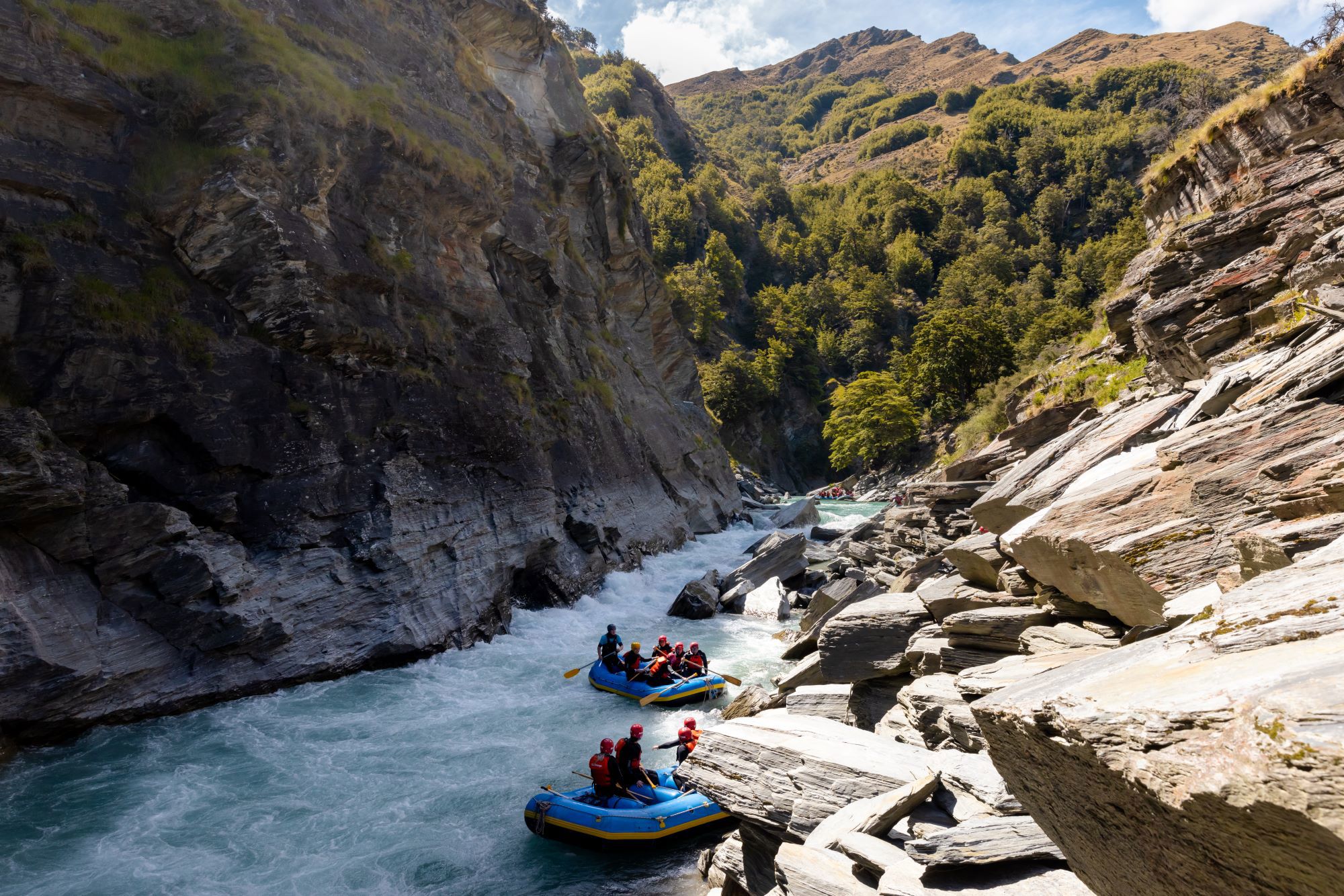 Soak up the scenery of beautiful Otago countryside from a totally fresh perspective – floating along the Kawarau River! This whitewater adventure is the perfect route to take if you’re new to rafting, and rapids are typically grades 2-3. In your wetsuit, you can paddle, swim or float along the river, as towering rocky cliffs surround you.