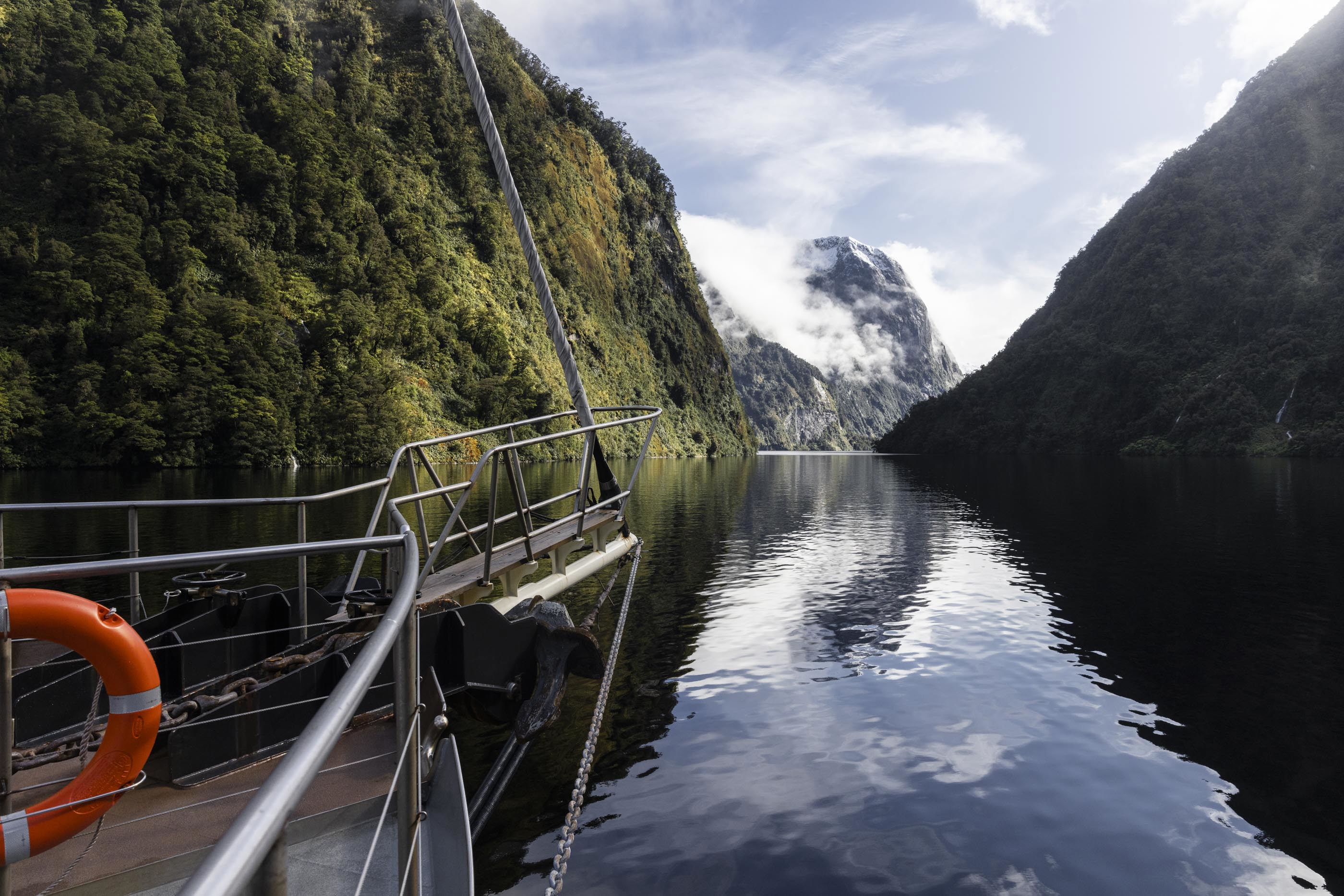 Doubtful Sound isn’t a noisy spot. However, much like your eyes becoming accustomed to the darkness, your ears become accustomed to the quiet fiord’s subtle sounds. Whether that’s the splattering of waterfalls, the wake of a dolphin’s dance, or the harmonies of birdsong, over the course of the overnight cruise, your ears tune into sounds you may not otherwise pay attention to. By the time you reach Hall Arm on the second day, you experience the ‘Sound of Silence’. An opportunity to relish real wilderness without any manmade noises. The boat is still, engines off, and guests silent. It’s a raw sensation, with the silence, unbelievably, ringing in your ears.