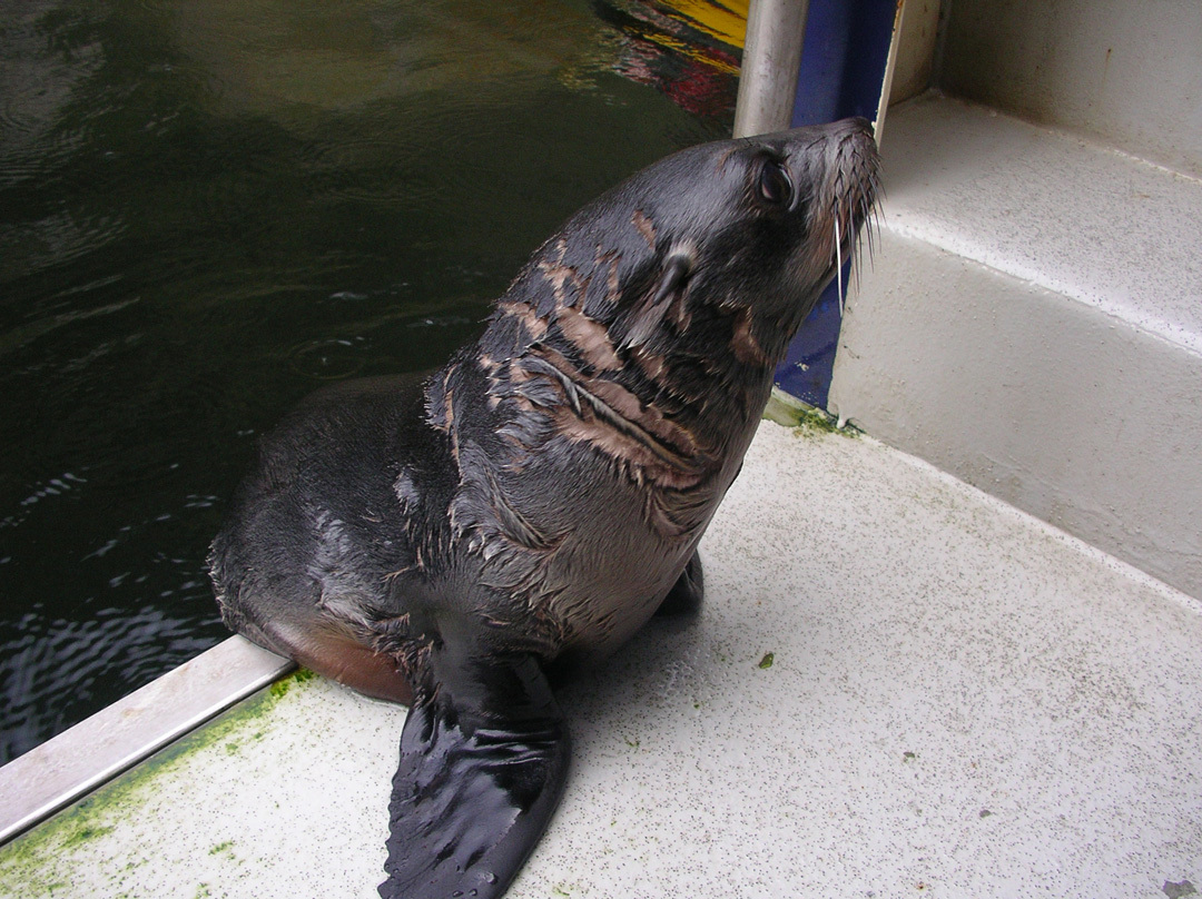Seals are in Milford Sound all year round and Chris says they’re more playful when dolphins are about but dolphins take no notice. One of his photographs is of a baby seal on the Milford Mariner.