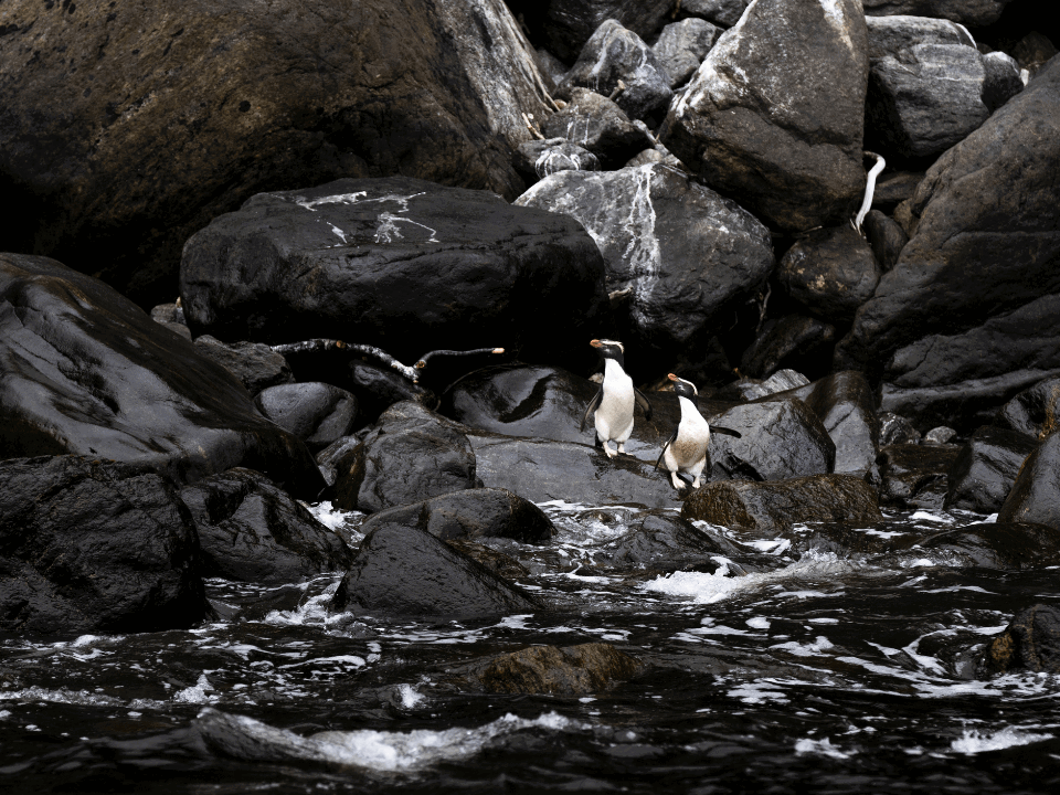 With bold yellow crests and a deep brick-red flush in breeding season, tawaki are one of the world’s rarest penguins, found in Piopiotahi Milford Sound and along the wider Fiordland coast. Best time to spot these beautiful creatures is during breeding season, from July to November. They favour damp, forested nest sites and are often spotted close to the water’s edge.