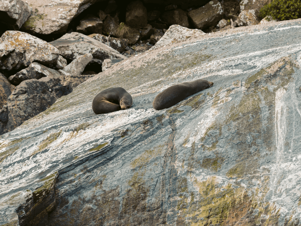 Kekeno, or New Zealand fur seals, are native to Aotearoa and Milford Sound’s most charismatic locals. You will often find them sprawled on sun-warmed ledges, drying their coats and dozing between fishing trips. In the water they are quick and curious; on land they are all whiskers, flippers and unapologetic naps. They even have their very own landmark in Milford Sound, Seal Rock.
