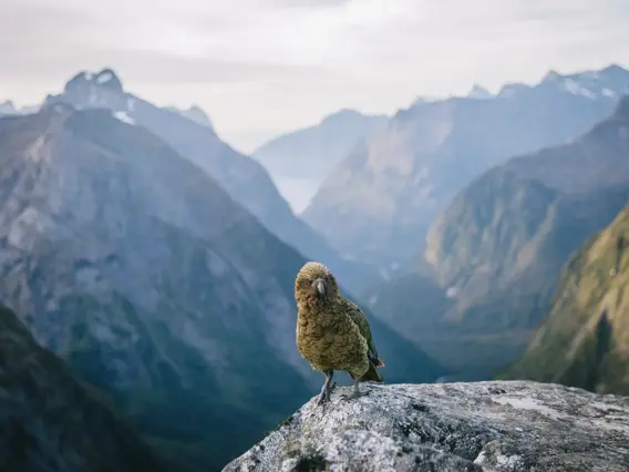 The best places to spot Kea are on the Milford Road. You’ll often see them hanging around to the Homer Tunnel and Monkey Creek, socialising near cars. Please enjoy them with your camera, not your snacks - feeding wildlife harms them in the long run.
