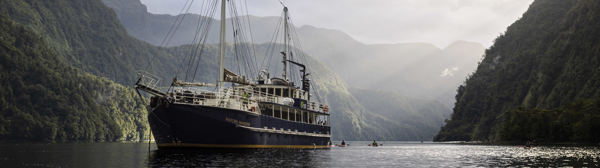 What: The Preservation Inlet Discovery Expedition is the cream of the expedition crop. Over 7 days, adventurers uncover five of New Zealand’s southernmost and rarely visited fiords. Travelling where no roads lead, you’ll spend the week cruising in and out of the Fiordland coastline aboard the Milford Wanderer. This vessel is your home for the week, and it’s equipped with everything your comfort would need. Think twin compartments, cosy beds, modern communal bathroom facilities and delicious meals prepared by your onboard chef. You have the option to disembark frequently to head out on guided walks through the temperate rainforests, shores, and the historic sites Fiordland is known for, and explore the water by kayak and small boat.