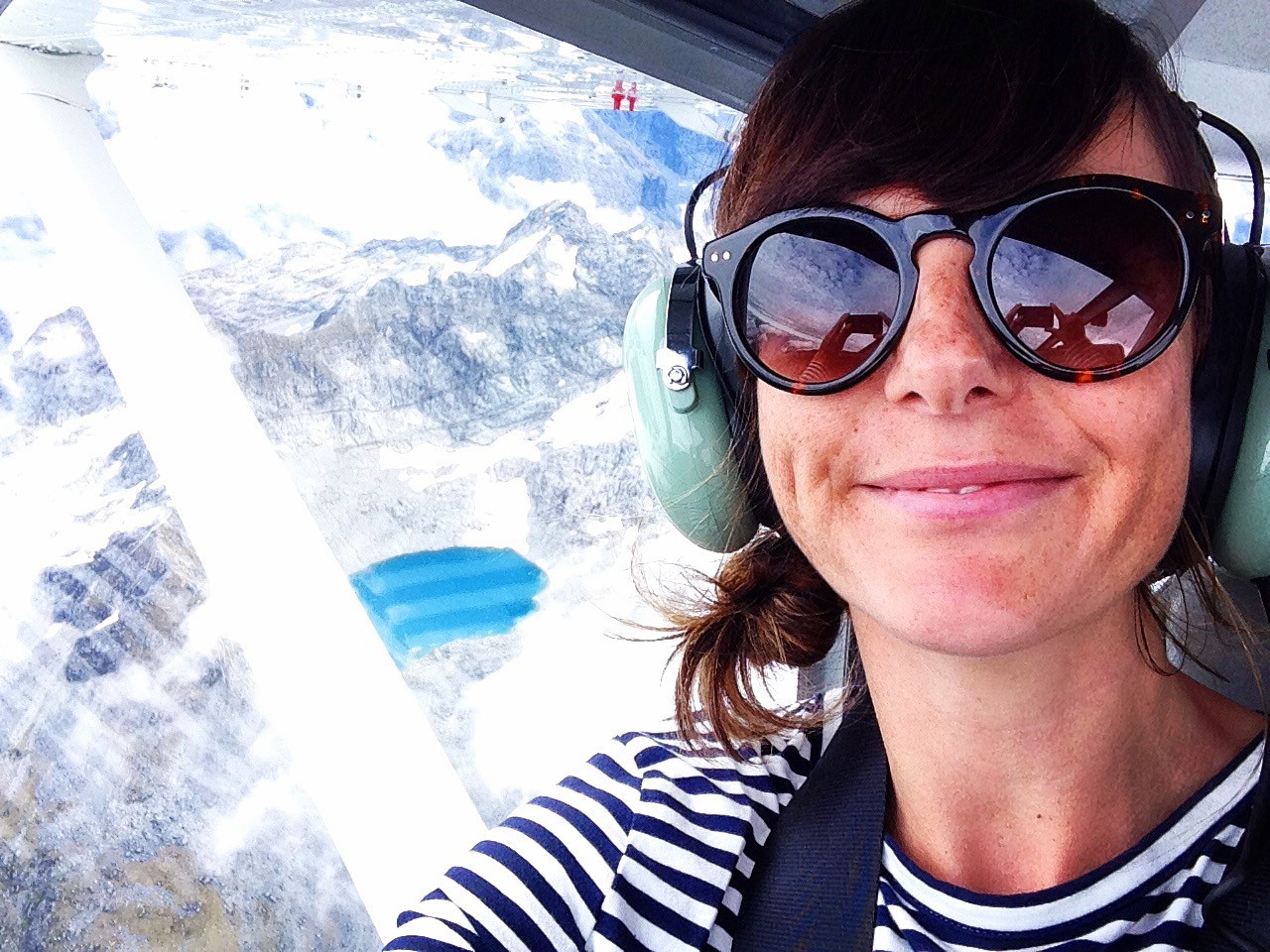 Token plane selfie. Bonus points for glacier lake in the background.