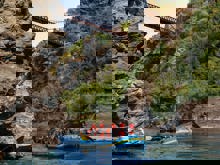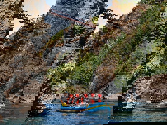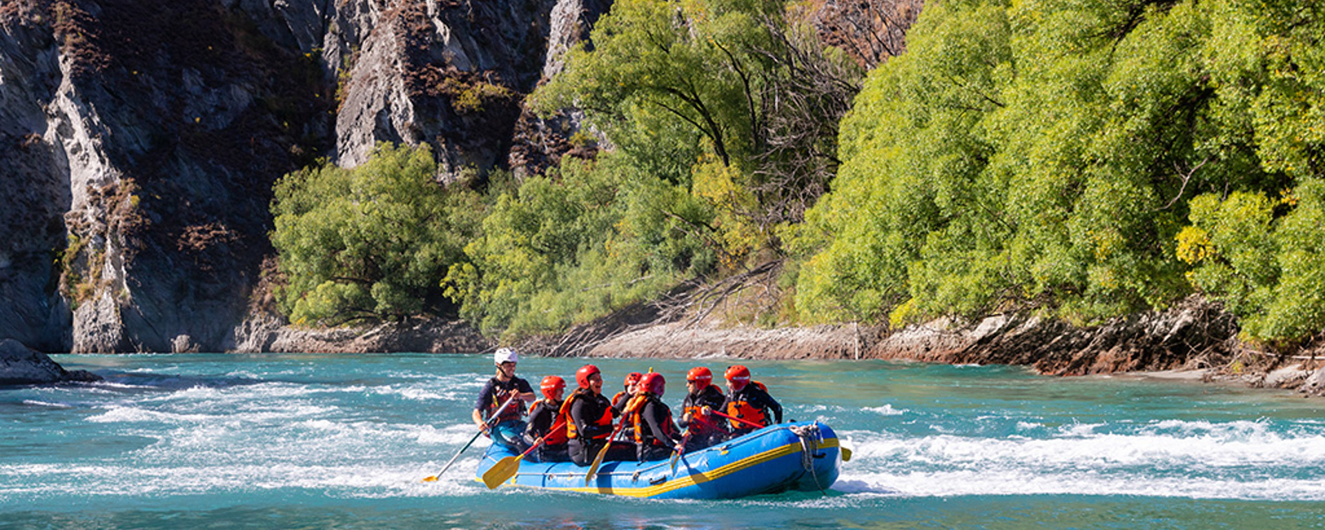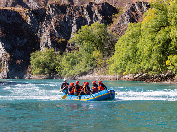 Kawarau River - Is usually graded 2-3 (however occasionally grade 2-4 at higher water levels), therefore easier to navigate and with less risk of falling out. There are flat stretches of river between the rapids where you'll have the opportunity to race your friends on the other rafts or jump out and swim, also watch out for the other rafts as there's always a good chance of a water fight breaking out.