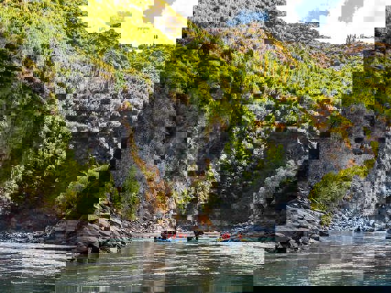 The Kawarau River is a much deeper and bigger river, flowing through some spectacular Central Otago vineyards and the trip ends with a 400 meter long, grade 3/4 rapid.