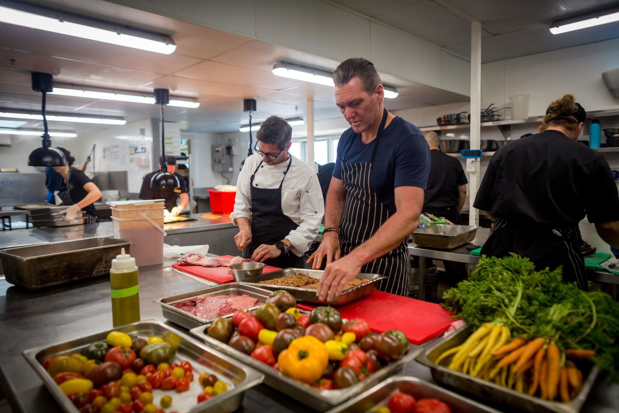 Visiting Australian celebrity chef Justin North enjoyed a chance to sample the gourmet BBQ lunch menu before heading to the kitchen to work with Executive Chef Mauro Battaglia at Walter Peak High Country Farm in Queenstown on Tuesday 7 January.