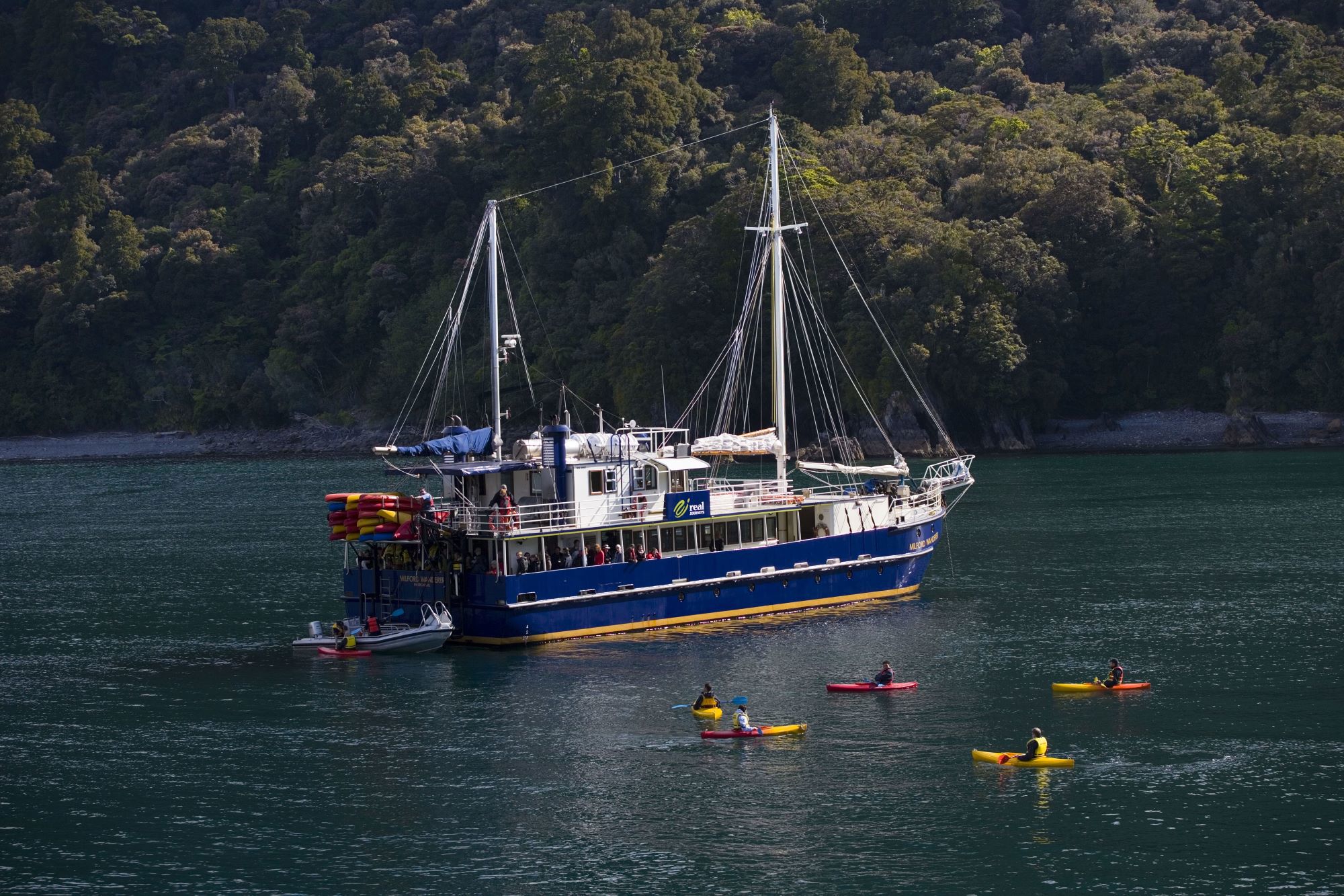 Real Journeys General Manager Paul Norris says as soon as customers were transferred out of Milford Sound on Wednesday 5 February, the Milford Wanderer set sail for Doubtful Sound to add extra day and overnight cruises to the schedule.