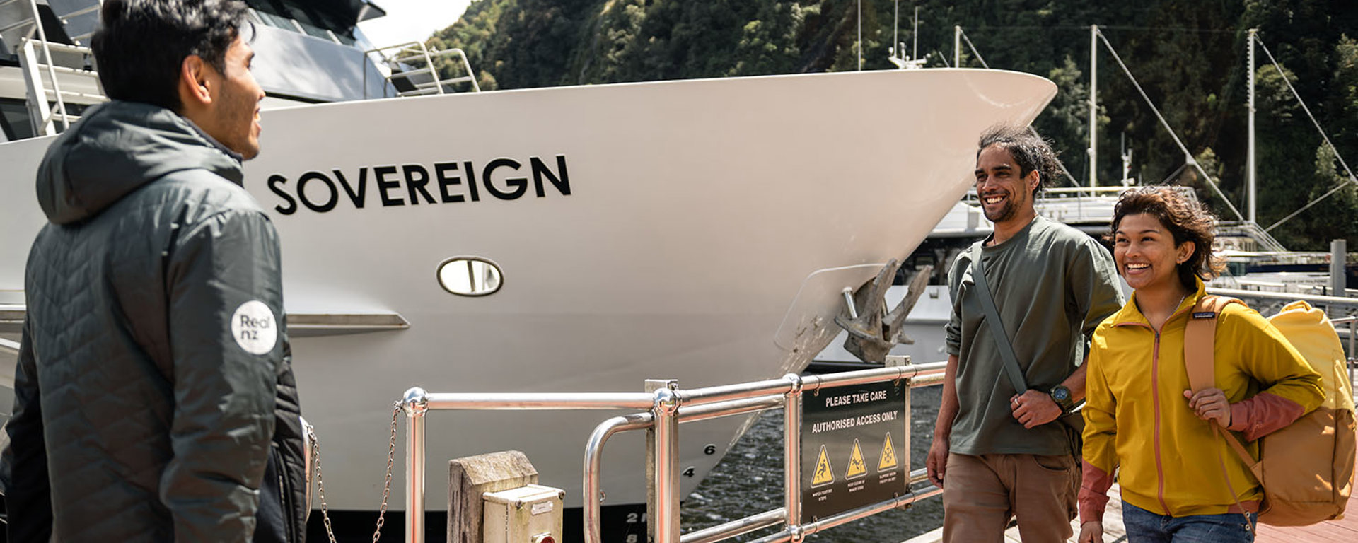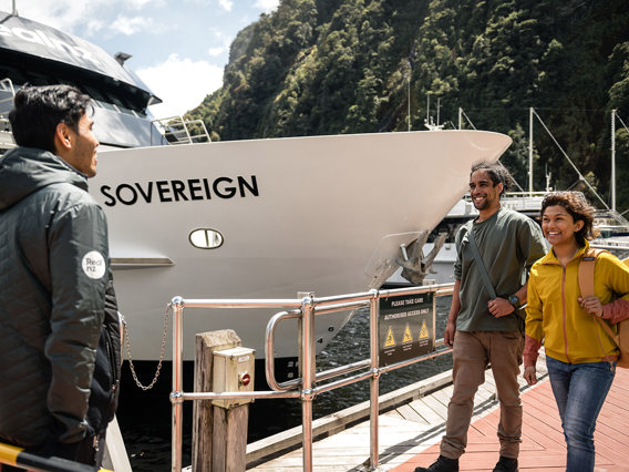 米尔福德峡湾巡游体验的出发地点位于米尔福德峡湾游客中心的码头。地址为: Milford Sound Visitor Terminal, Milford Sound 9679,联系电话为: +64 3 249 6000。如果您选择由 RealNZ 提供的巴士和游船服务,我们将在出发前为您安排好上车地点或集合地点。